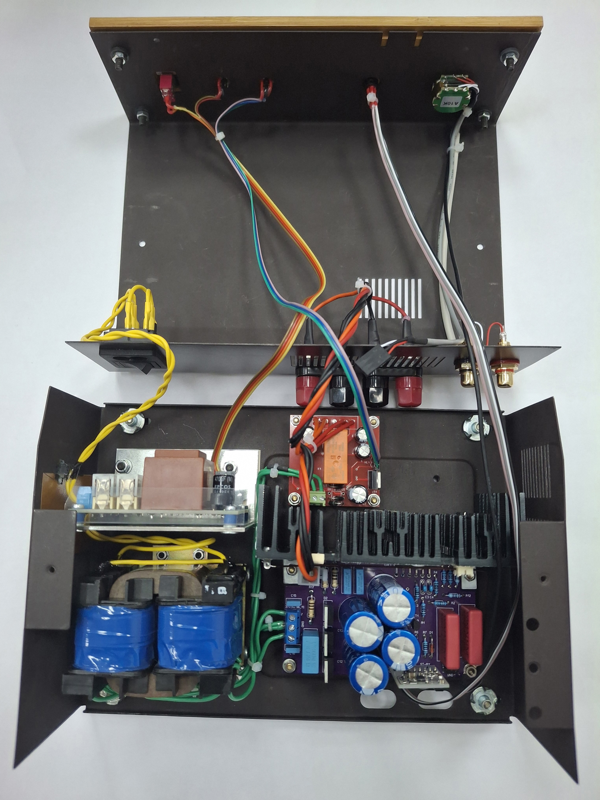 Плата крепится к металлическому шасси (корпусу) с помощью латунных стоек. На плате одно из крепёжных отверстий (рядом с входами) имеет электрический контакт с землёй. Между стойкой, которая соприкасается с металлизацией данного отверстия и корпусом должен быть электрический контакт и больше нигде. Разъёмы RCA должны быть изолированы от корпуса.